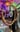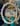 Silver base, outer ring is wrapped with yellow and periwinkle faceted beads, inner ring is wrapped with yellow, periwinkle, and clear faceted beads. About 22" inches long and 5.5" wide.