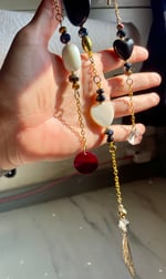 * Placement: The beads are strategically placed on hanging strands, adding a touch of elegance & movement.
